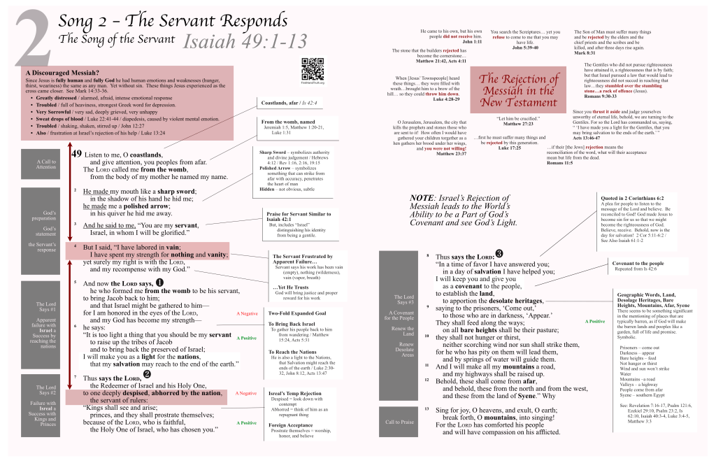 His purpose was to bring justice to the world and be a light to the nations, but his own people – Isreal – rejected him (49:6,7).  It seems as if he has failed at bringing back to Yhwh his own people.