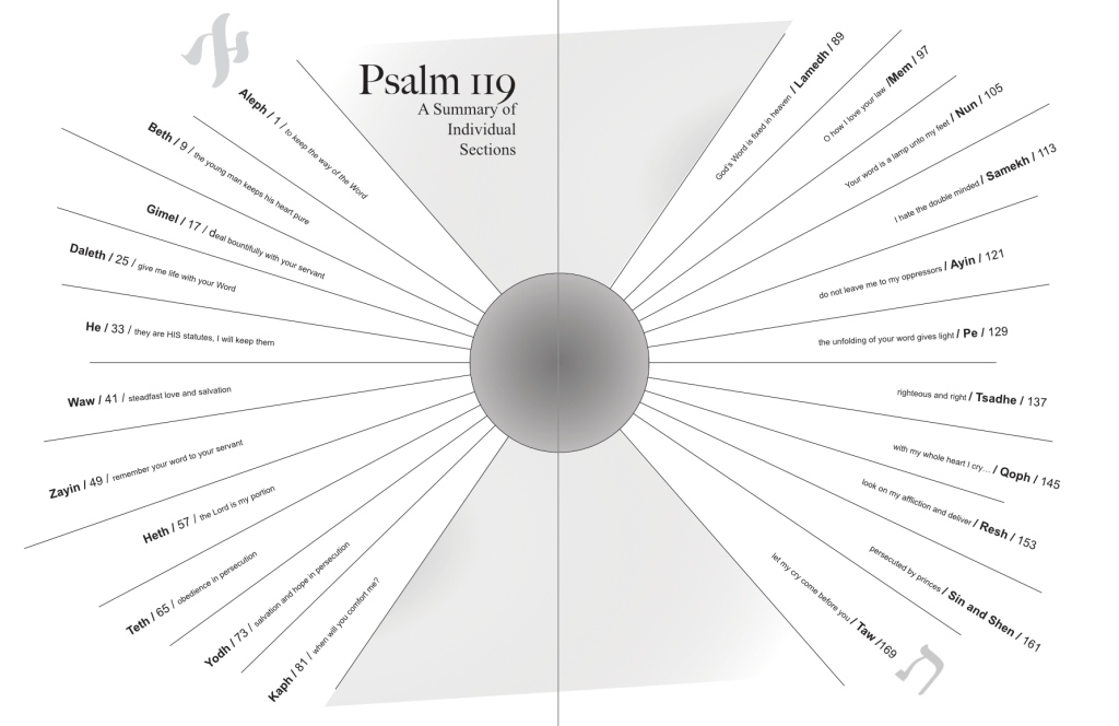A couple of years ago I made this study for our Summer Missions Trip. Each participant picked one of the many “stanzas” of Psalm 119. This is a bit rough as I used it primarily for that purpose. I reworked it last year for my Thursday Bible Study group to use. This was particularly effective in a week long nightly devotional setting.